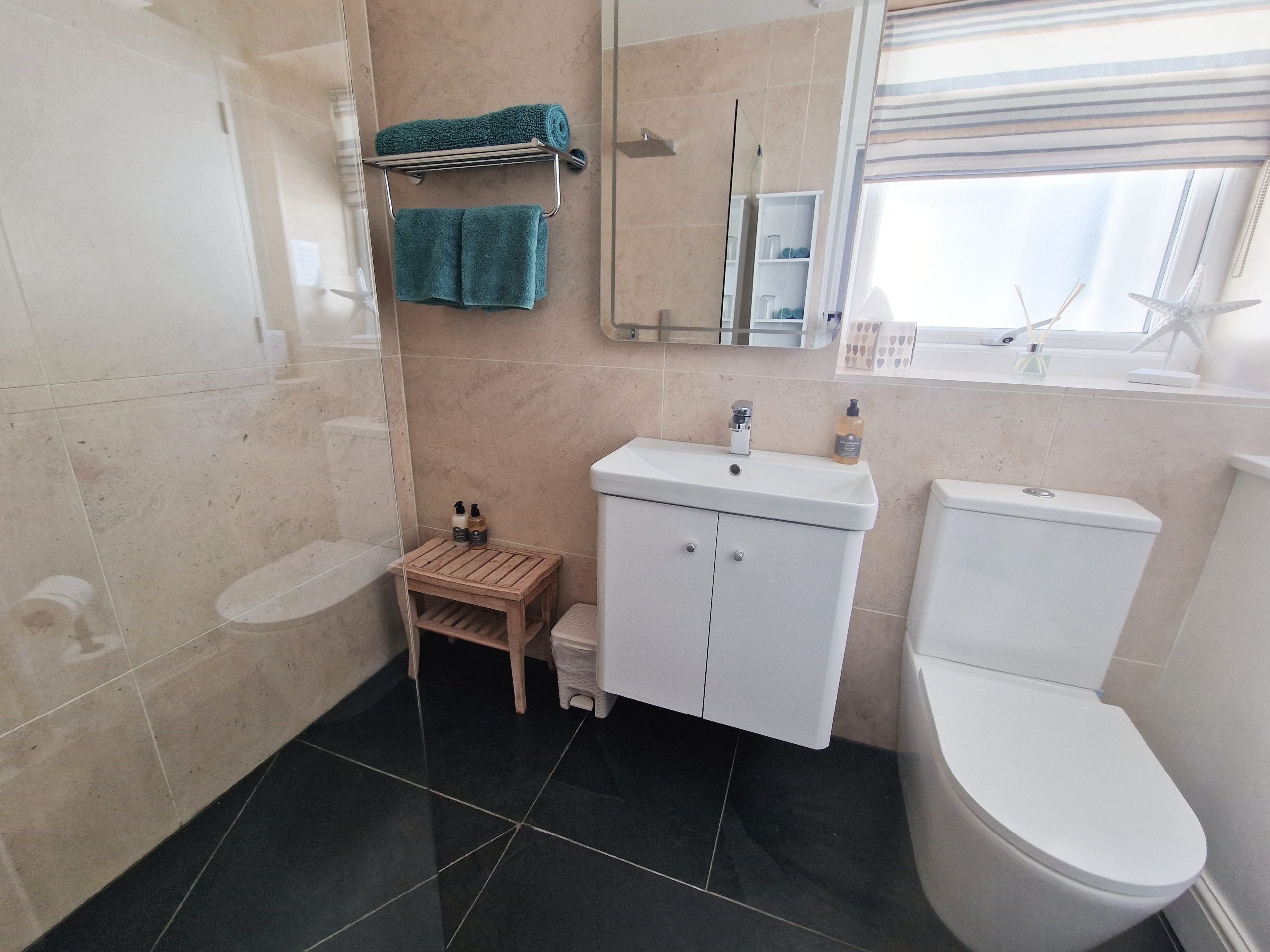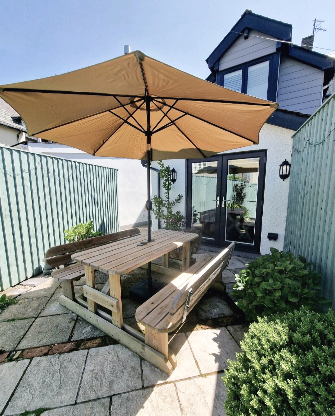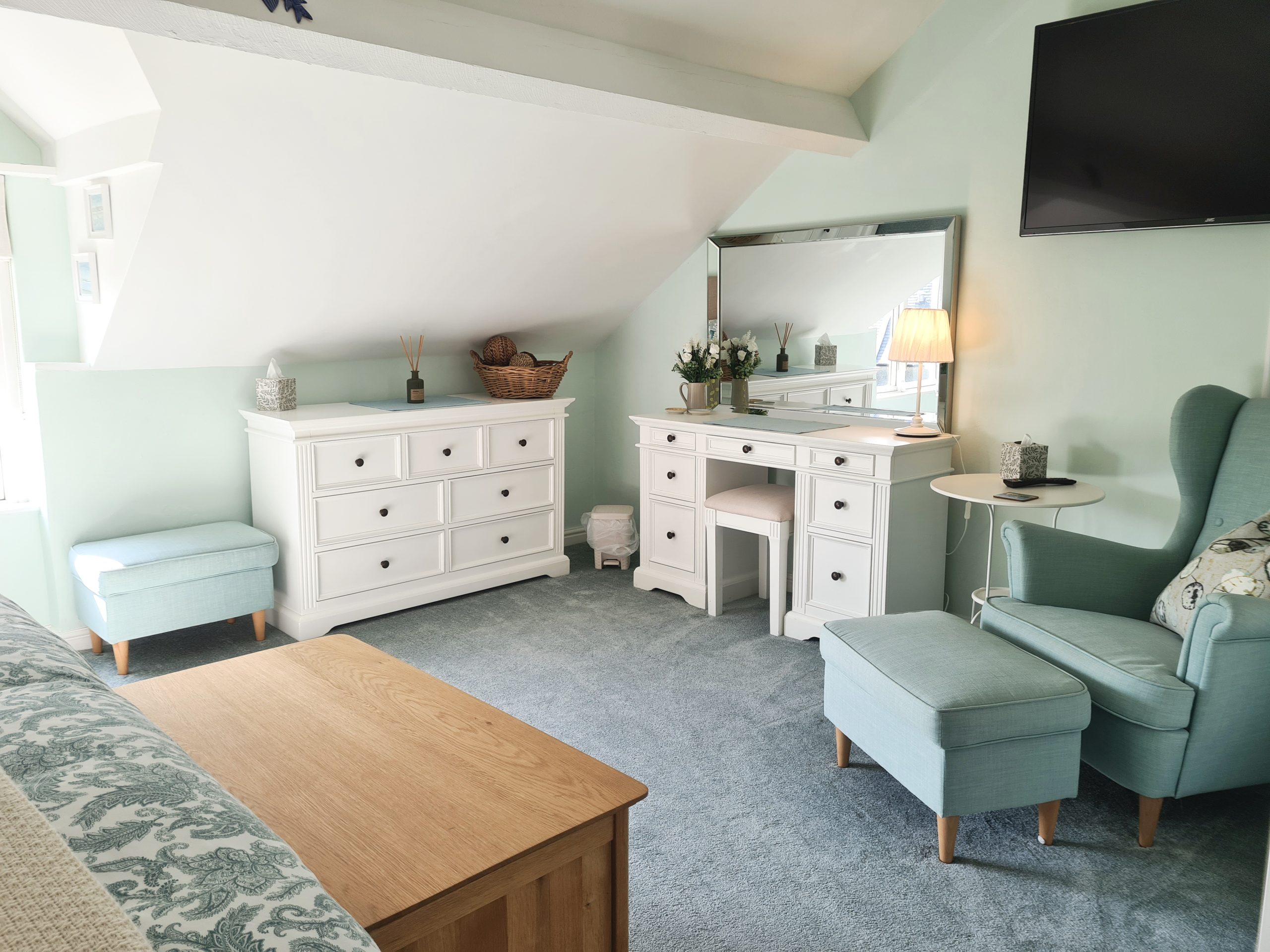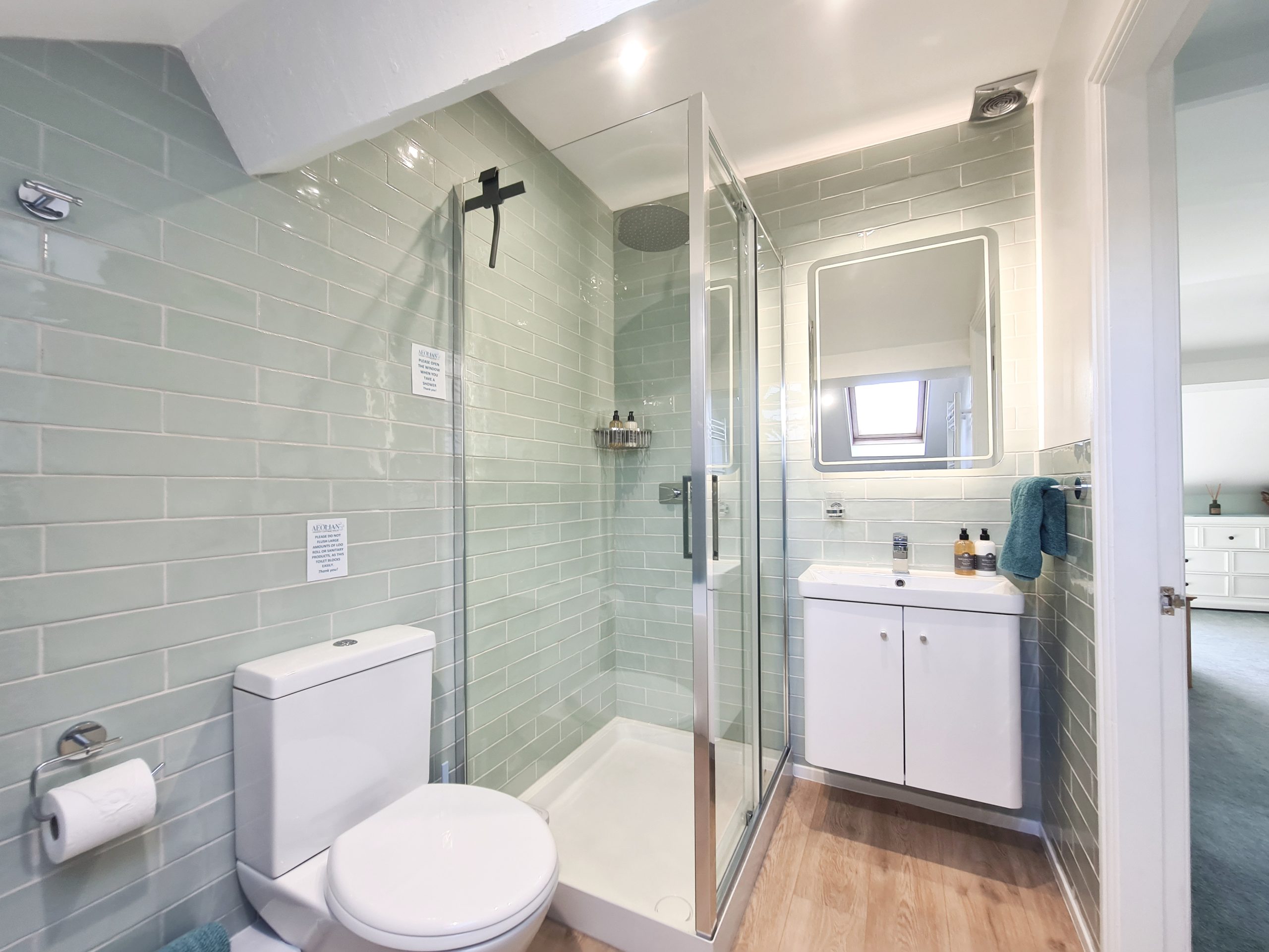 Twin Velux above oak table, Smart TV and Bluetooth speaker. Eat in or out!