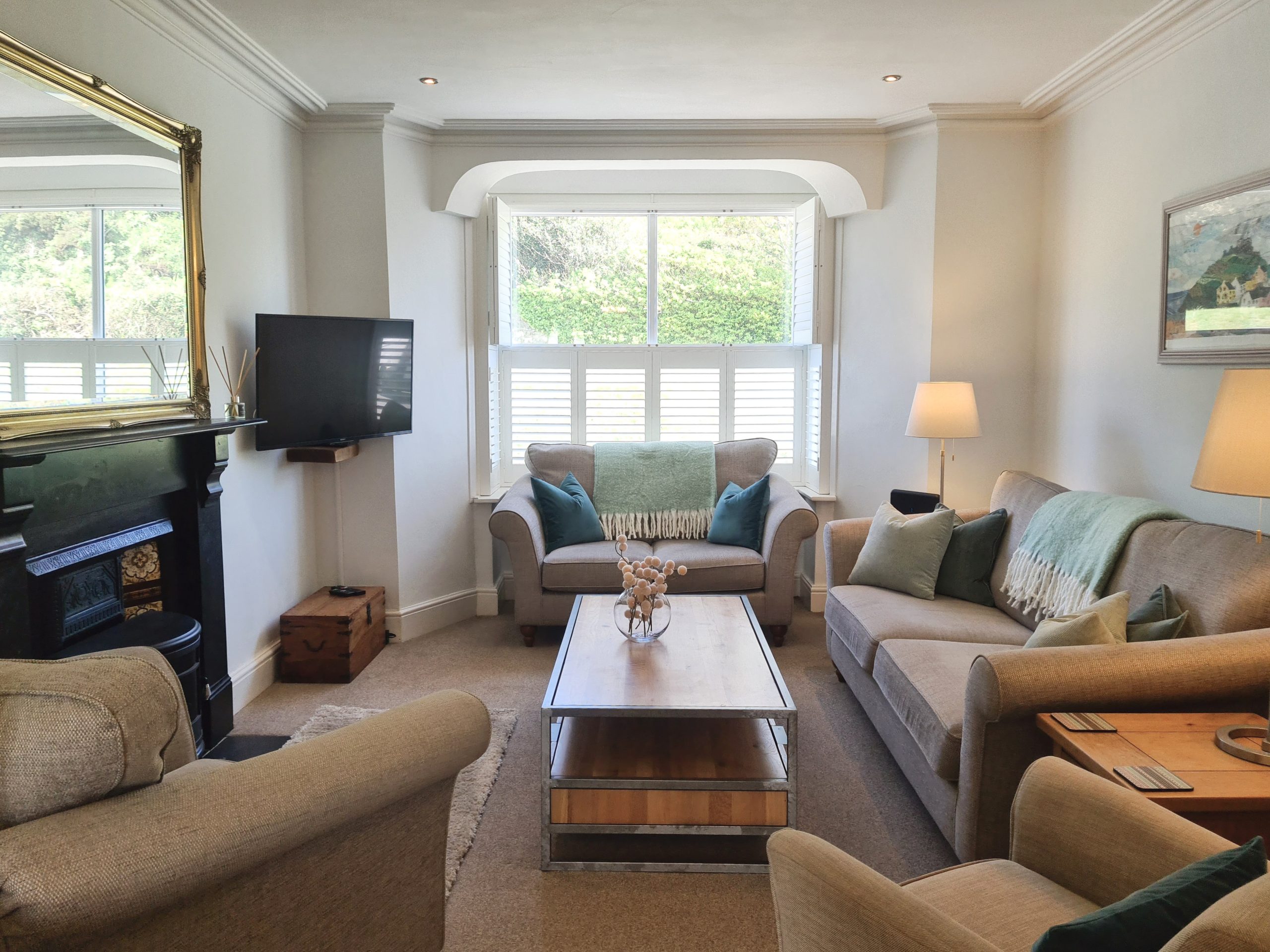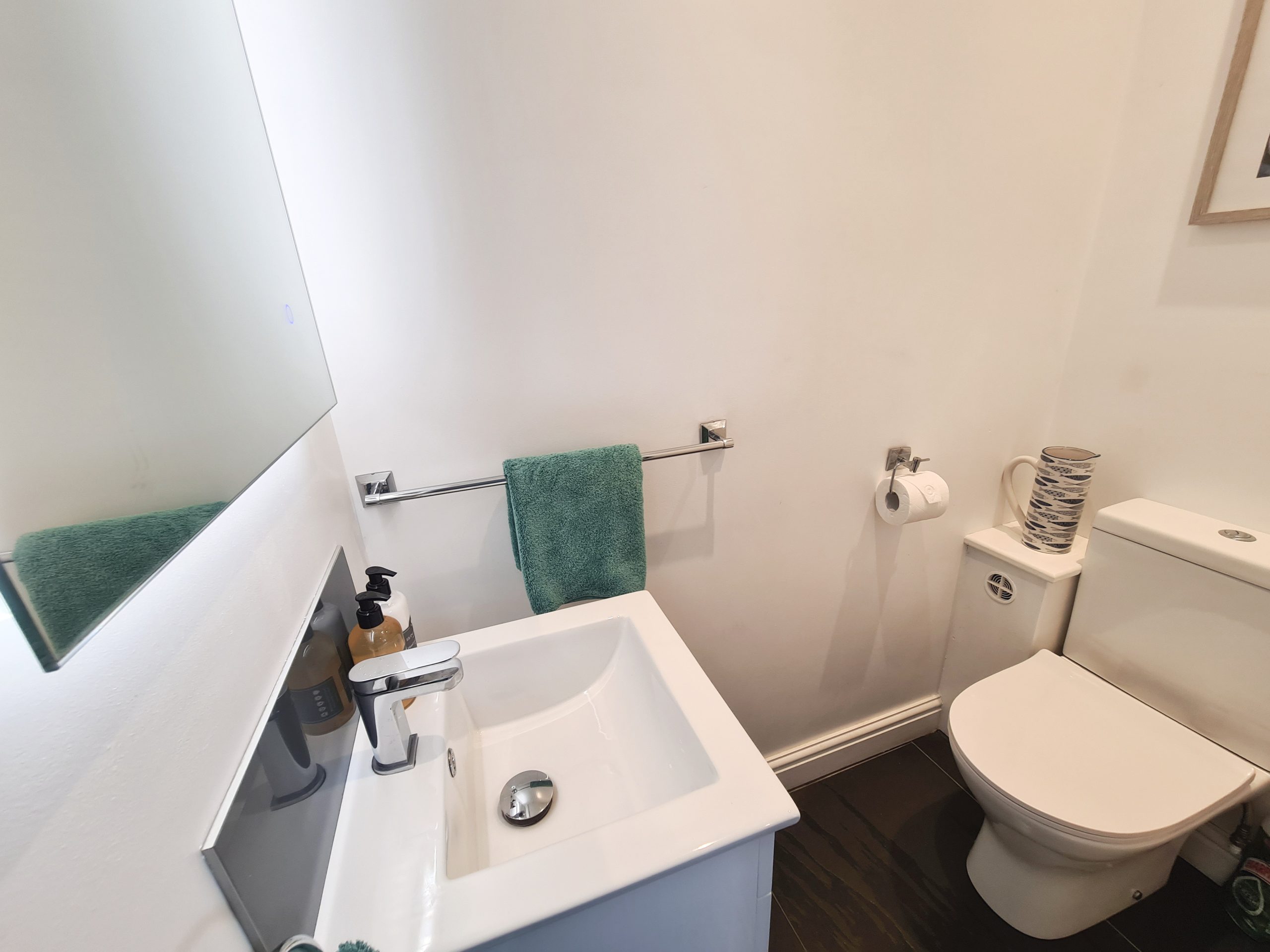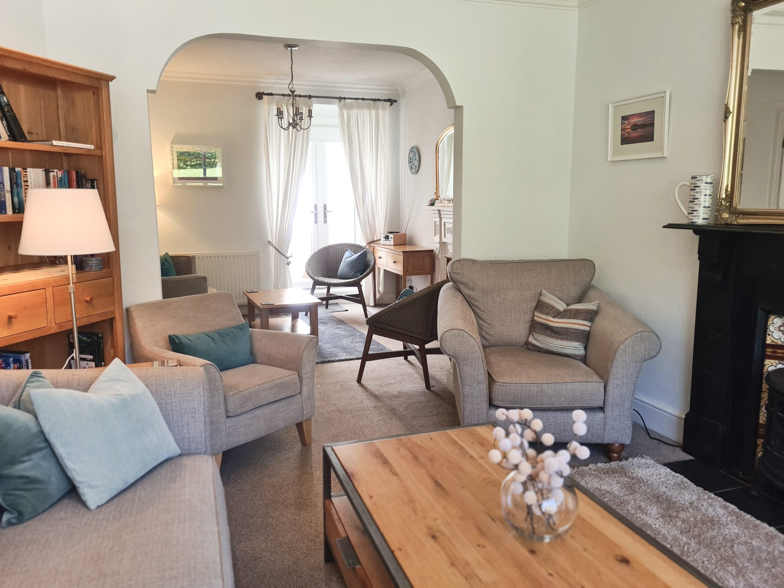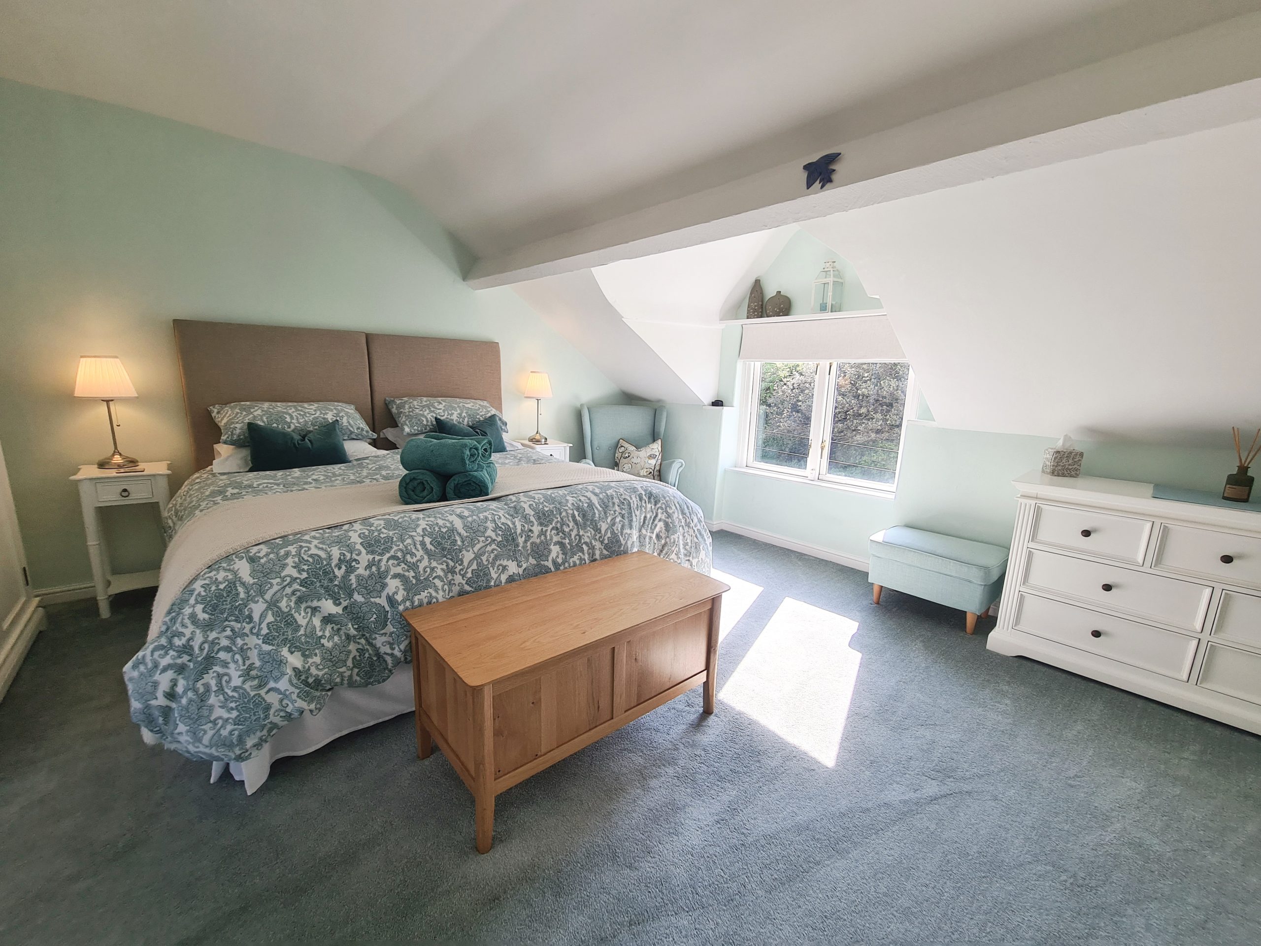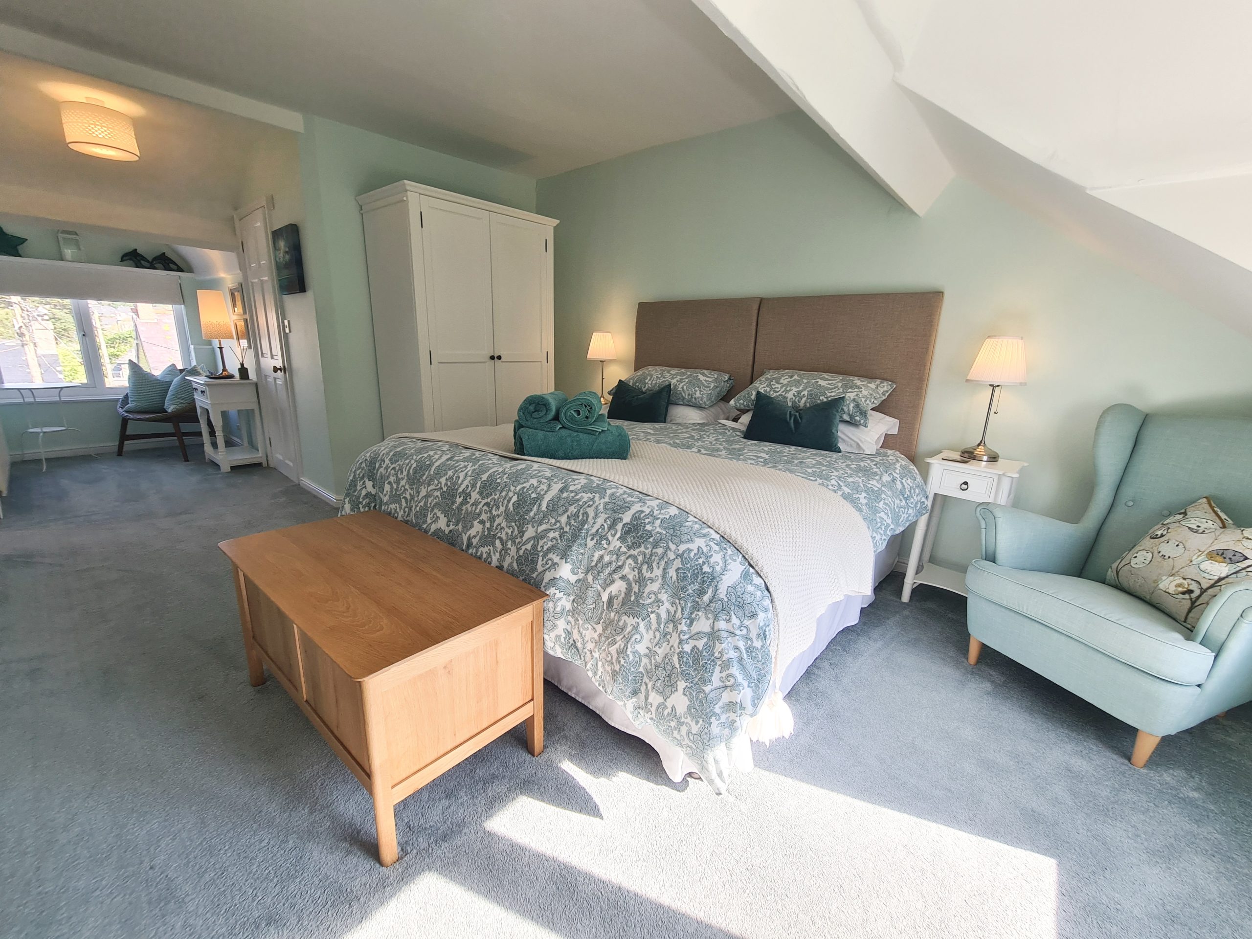 Twin Velux above oak table, Smart TV and Bluetooth speaker. Eat in or out!